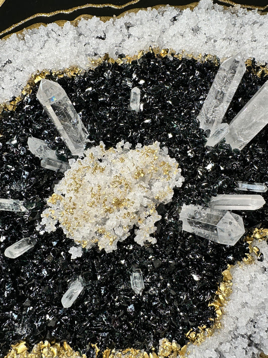 Tableau mural abstrait en résine époxy - L'éclat de Pyrite.