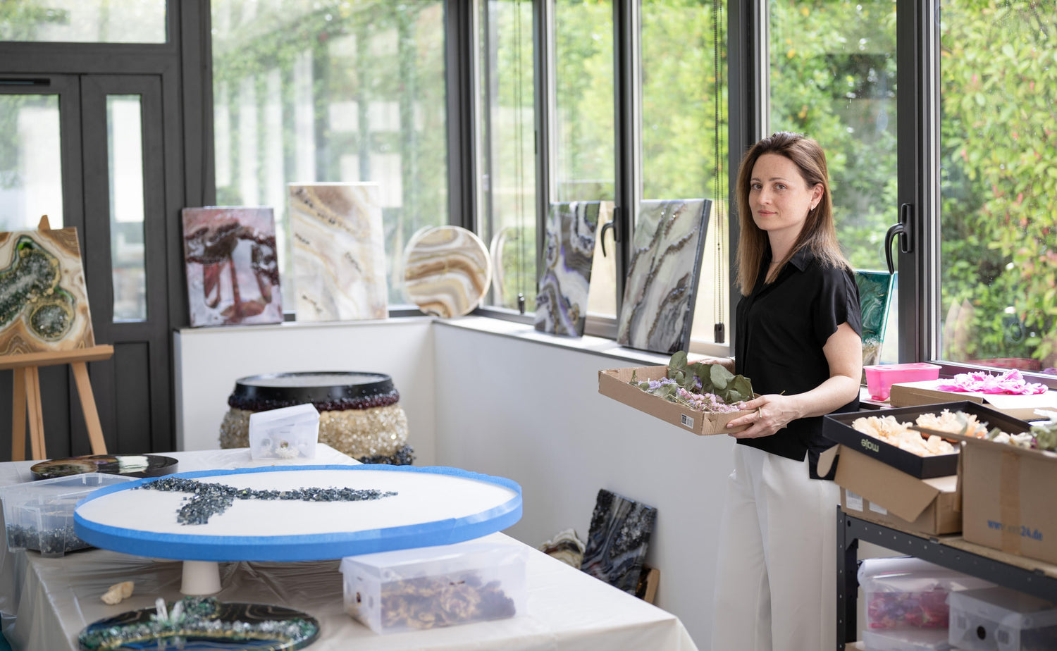 Sa source d’inspiration principale ? La nature.« Les couleurs et les formes des minéraux, des plantes et des fleurs stimulent mon imagination »confirme-t-elle. BB Artskill utilise ainsi des pierres naturelles et des éclats de verre dans ses créations,« ce qui ajoute une certaine texture »explique l’artiste. Elle crée également des œuvres avec des fleurs séchées.« Mon objectif est de capturer cette beauté éphémère tout en étant dans une démarche durable et innovante ». Actuellement, la jeune femme continue à explorer de nouvelles techniques et à élargir sa palette artistique pour offrir des pièces uniques et inspirantes à ses clients.