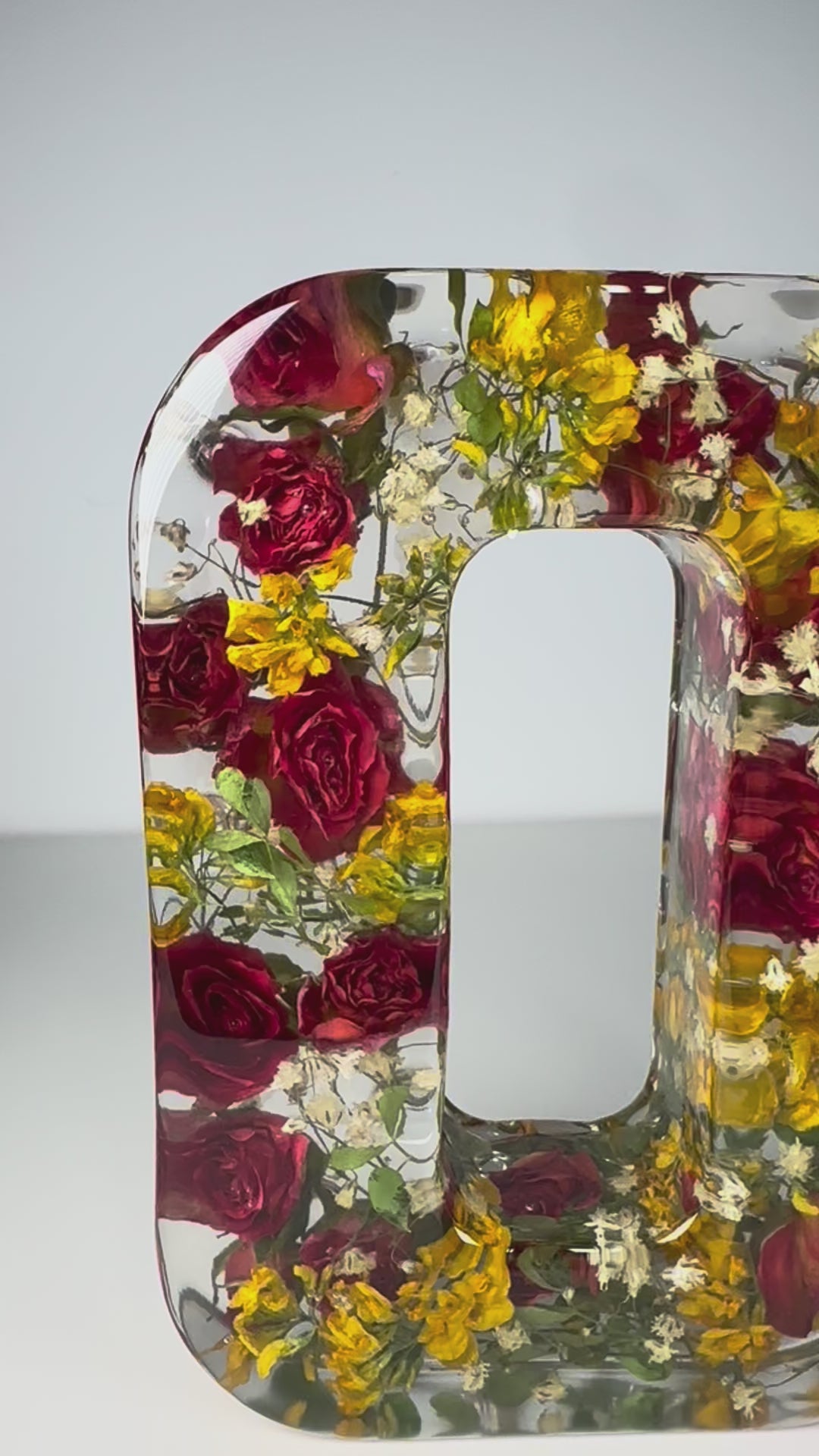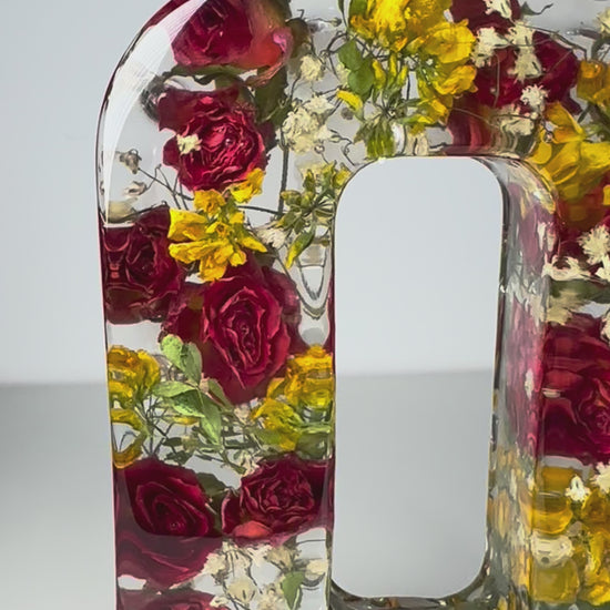 Lettre majuscule ,fleurs séchées en resine.